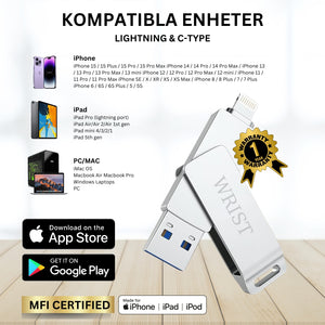USB-minne till iPhone och iPad/iOS/Android (Apple MFi -certifierat)